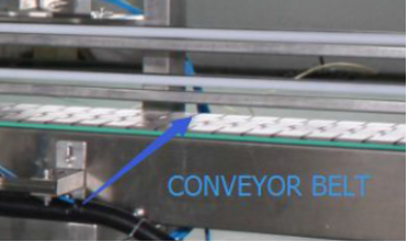 使用輸送帶輸送奶瓶,它是變頻控制系統。